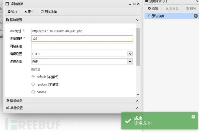 URL地址:http://201.1.10.206/Kr1-shujuku.php连接密码:123