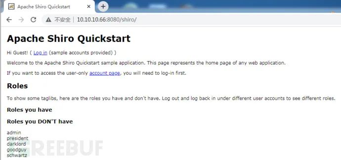 访问10.10.10.66:8080,发现了shiro框架10.10.10.66:8080/shiro