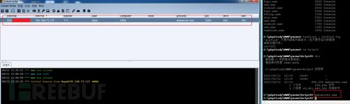 通过蚁剑虚拟终端上传并执行木马文件,成功上线CS