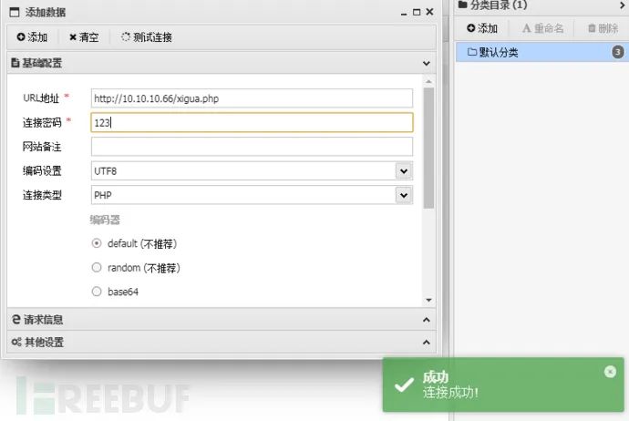 URL地址 http://10.10.10.66/xigua.php连接密码 123