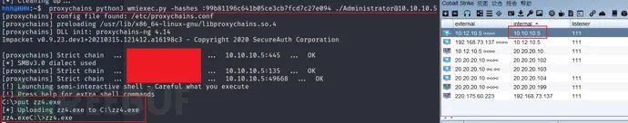3)wmiexec.py连接登陆进shell,上传执行zz1.exe文件,成功上线CS~