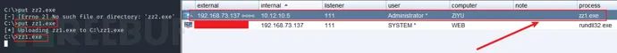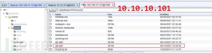 在10.10.10.0/24同网段中有Web服务器可以访问文件,将后门文件zz4.exe放置在Web服务器上,用于获取该后门文件。