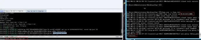 ##安全域# frpc.ini[common]server_addr = 10.10.10.101server_port = 12012[http_proxy]type = tcpremote_port = 1096plugin = socks5