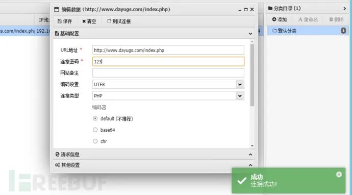 分别填上URL地址和连接密码,成功连接