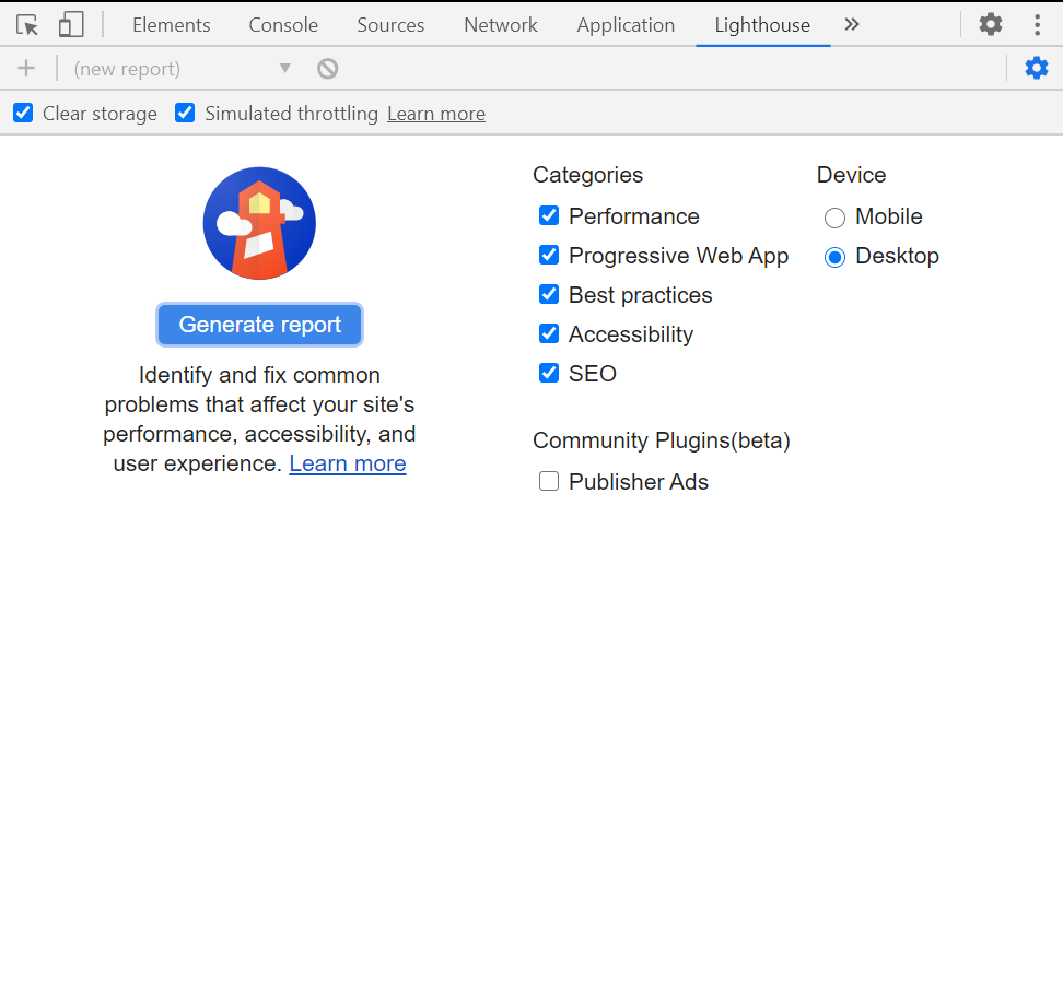 译者注:Lighthouse 已经集成到了 Google Chrome(或 Microsoft Edge),无需单独下载。