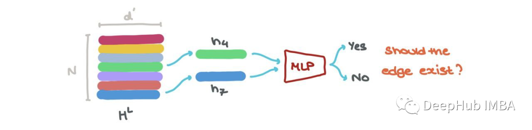 我们还可以进行链接预测→某个节点i和j之间是否存在链接?hLi和hLj的节点嵌入可以被输入到另一个基于sigmoid的MLP中,该MLP输出这些节点之间存在边的概率。