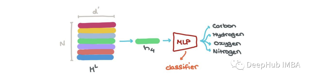 我们可以做节点分类→这个节点属于什么类?在特定索引hLi (i:1→N)处嵌入的节点可以通过分类器(如MLP)分为K个类(例如:这是碳原子、氢原子还是氧原子?)