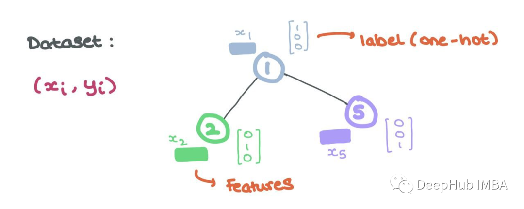 这些节点特征是GNN的输入,每个节点i具有关联的节点特征xi∈Rd和标签yi(可以是连续的,也可以是离散的,就像单独编码一样)。