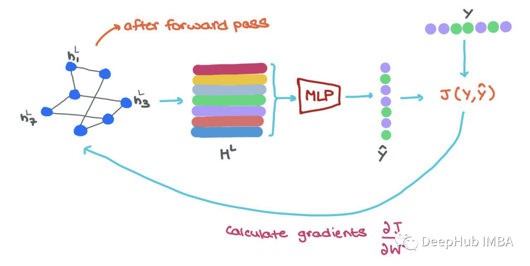 在训练过程中,一旦我们向前通过GNN,我们就得到了最终的节点表示hLi∈HL, 为了以端到端方式训练,可以做以下工作: