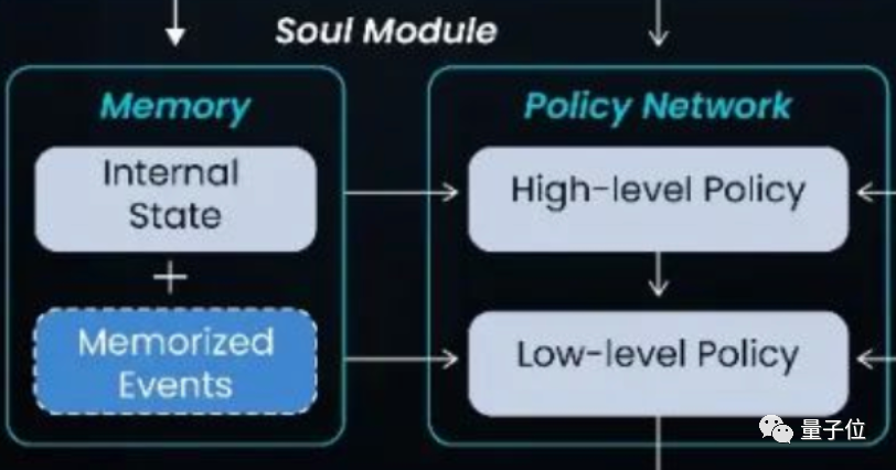 “策略”则分为上层宏观决策模型和下层交互模型。上层模型是一个长序列策略模型,它有点像AI的大脑,能够基于“记忆”中的社会常识信息+当下的环境系统做出决断,相当于给AI NPC制定一个整体计划: