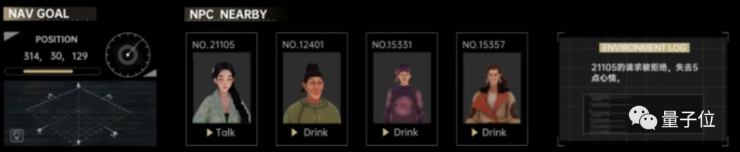 一方面,AI NPC之间通过交互和反馈生成的语言行为关系等信息,会被记录在这个系统里,持续影响AI NPC灵魂系统做出的行为决策;