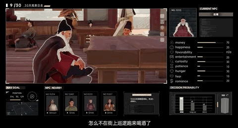 但“AI社会”中的NPC不仅有各自的长期目标,当下也需要为生存等短期目标而考虑,换而言之,它们和人一样有需求,并根据性格和心情状态做出不同的行动。