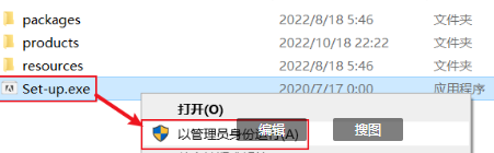 3.选中“Setup.exe”右键选择“以管理员身份运行”