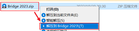 1.选中下载的压缩包,鼠标右键选择解压到“Bridge 2023”文件夹