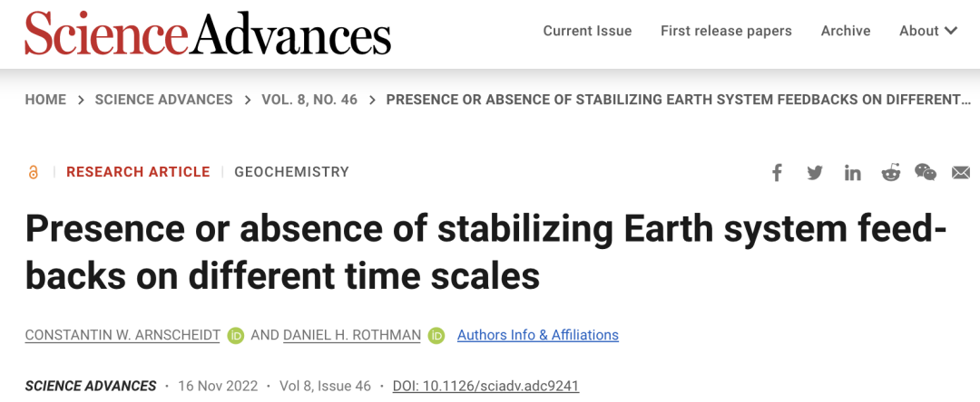 相关研究论文以“Presence or absence of stabilizing Earth system feedbacks on different time scales”为题,已发表在科学期刊 Science Advances 上。