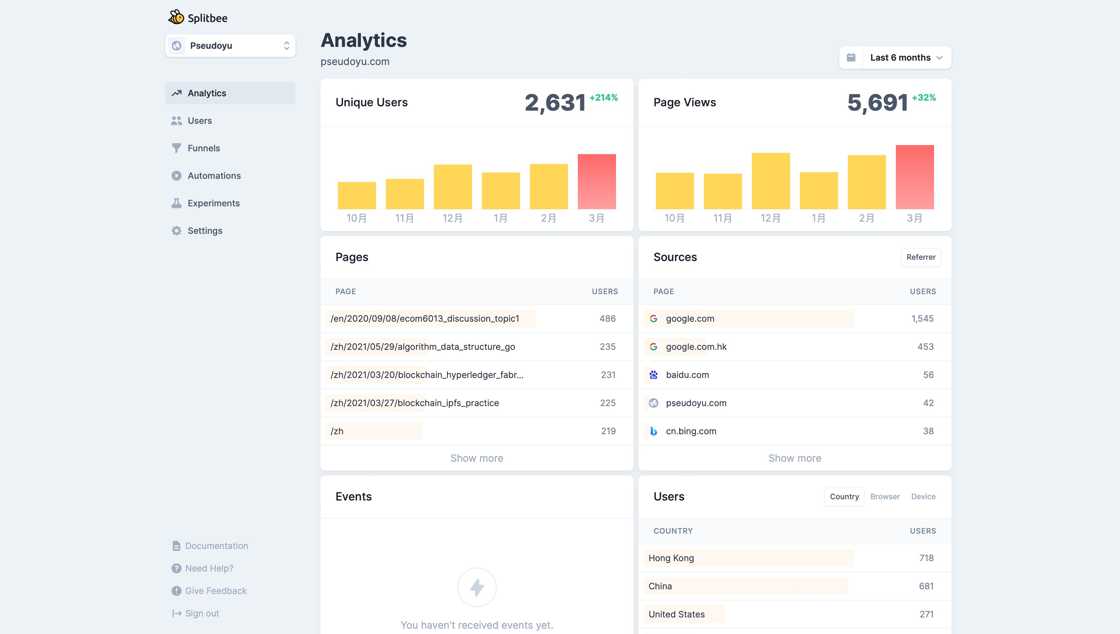 作为一个持续更新运营的博客平台,我们一定很好奇我们哪篇文章阅读量最高、哪个关键词检索最频繁等,帮助我们专注在更有价值的内容创作与分享上,类似的工具也很多,我选择了 splitbee 与 Google Console 来统计分析我的访客信息与搜索权重,此外,Cloudflare 也能够对网络流量进行分析,不过因为有很多网络无关流量,如爬虫等,所以参考性没有前两者强。