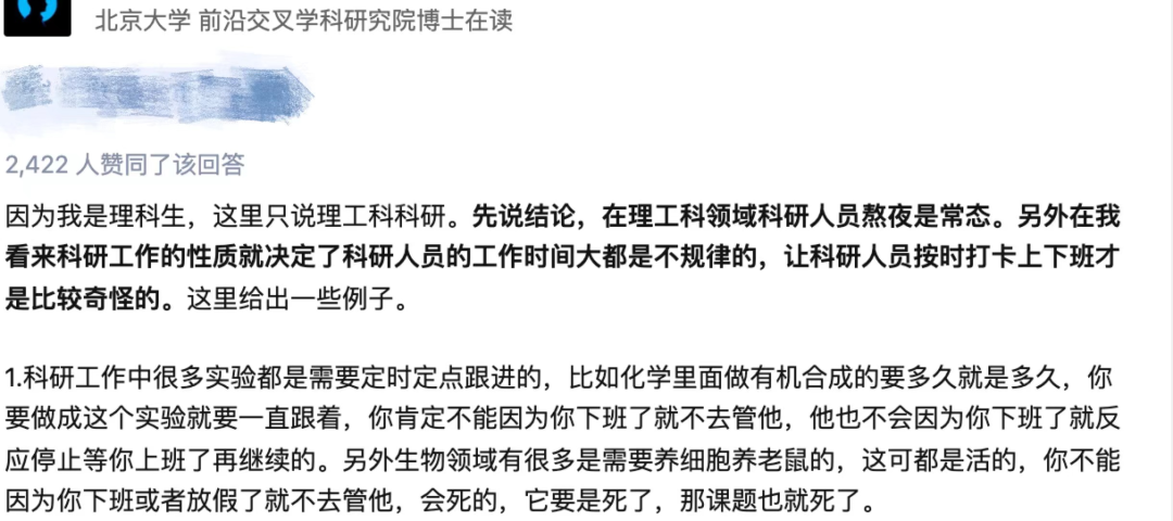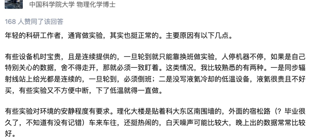 知乎网友大多表示,“科研人员,熬夜是很正常的。”“在理工科领域科研熬夜是常态。”