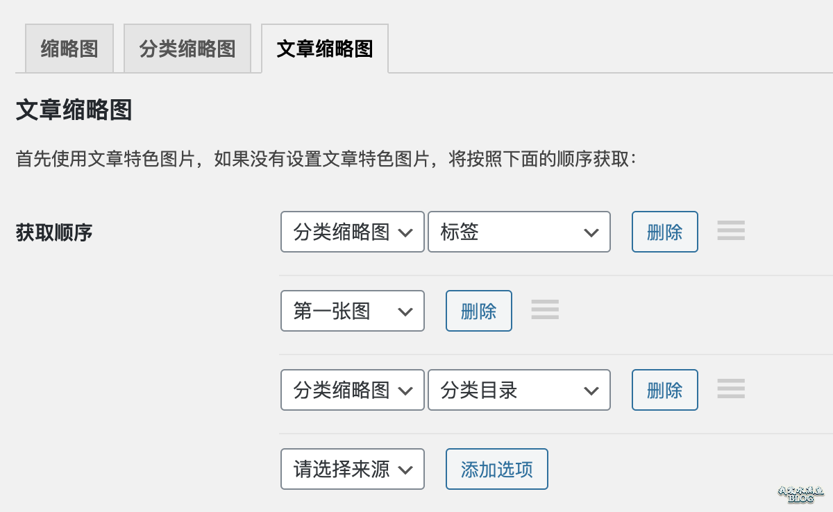 文章缩略图这三个函数,是基于你能够自己修改主题,不过我还是建议在缩略图设置的时候,选择:「无需修改主题,程序自动使用 WPJAM 缩略图设置」,这样无需设置就可以应用主题了。