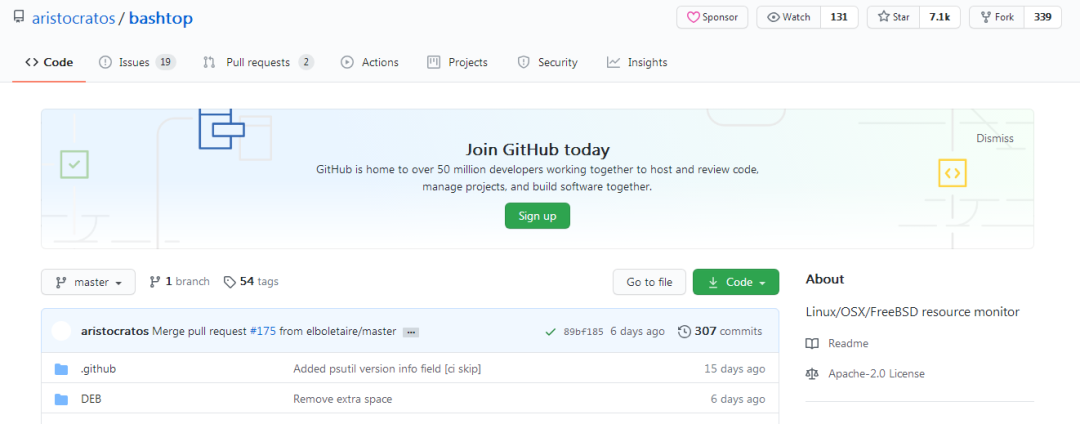 USAGE: bashtop感兴趣的伙伴们不要错过了哦,最后附上项目地址:https://github.com/aristocratos/bashtop