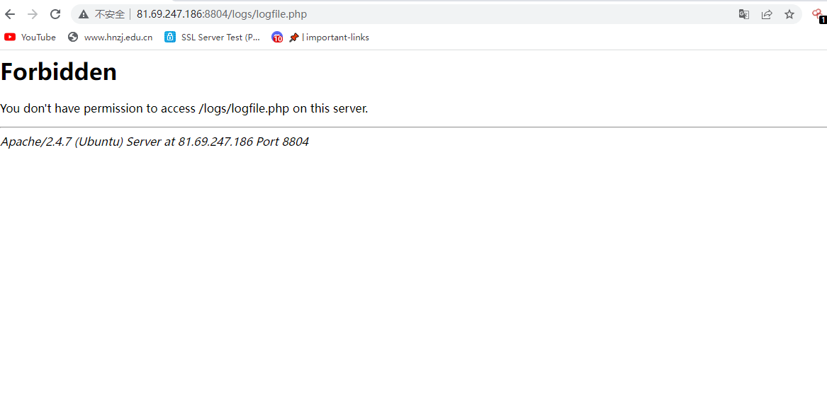 出现报错了,这个情况下应该也是写进去了,上面也提到了,是写到了logfile.php这个文件里面,访问一下,发现是不允许的,应该是权限不够