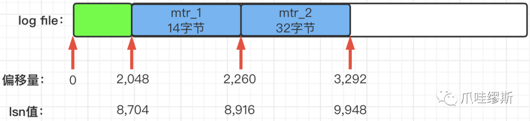 【注】偏移量从2,048开始;lsn值从8,704开始;