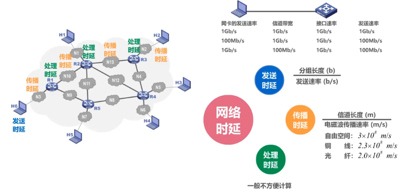 完成一次通信在路上各个环节所花费的时间。