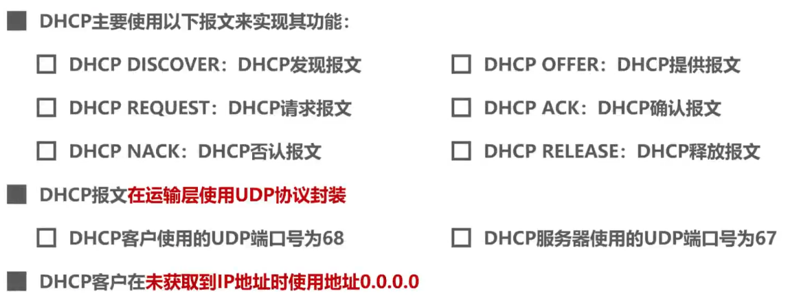 - 动态主机配置协议DHCP提供了一种机制,称为即插即用连网。这种机制允许一台计算机加入新网络时可自动获取IP地址等网络配置信息,而不用手工参与。