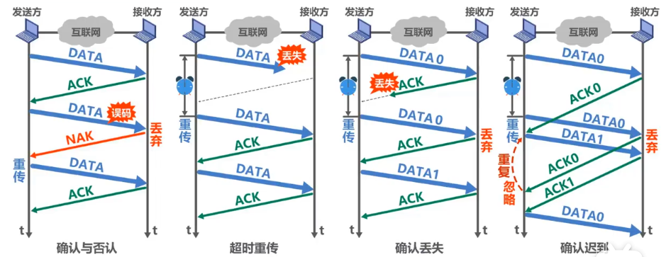 - 接收方-接收分组-还原报文