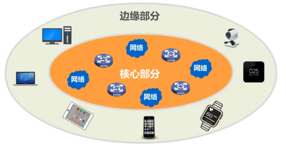 由大量网络和连接这些网络的路由器组成。这部分是边缘部分提供服务的(提供连通性和交换性)。