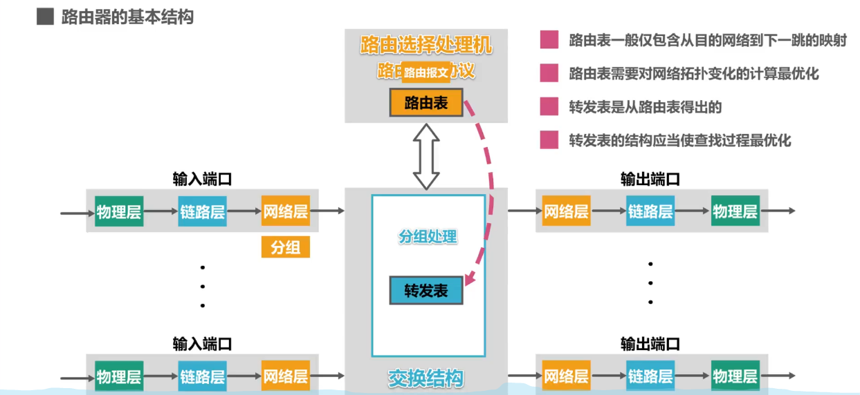 - 路由器-缓存分组-转发分组(查表转发)