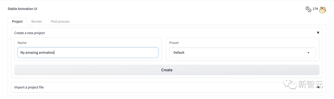 $ pip install 'stability_sdk[anim_ui]' $ python -m stability_sdk animate --guiRunning on local URL: http://127.0.0.1:7860用浏览器打开显示的网址后,就可以在「Project」选项卡中创建项目了。