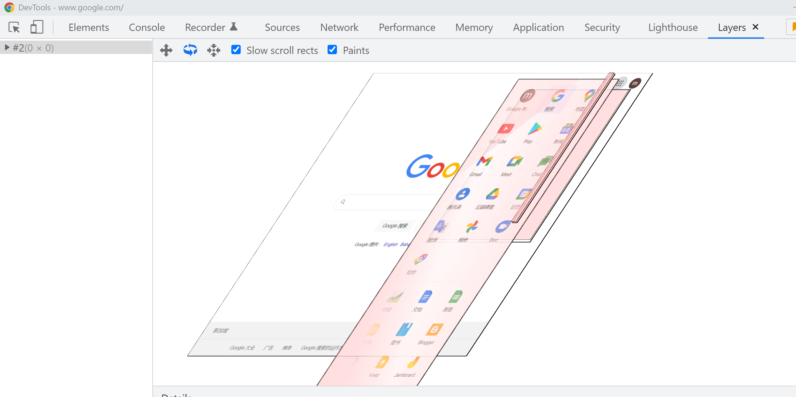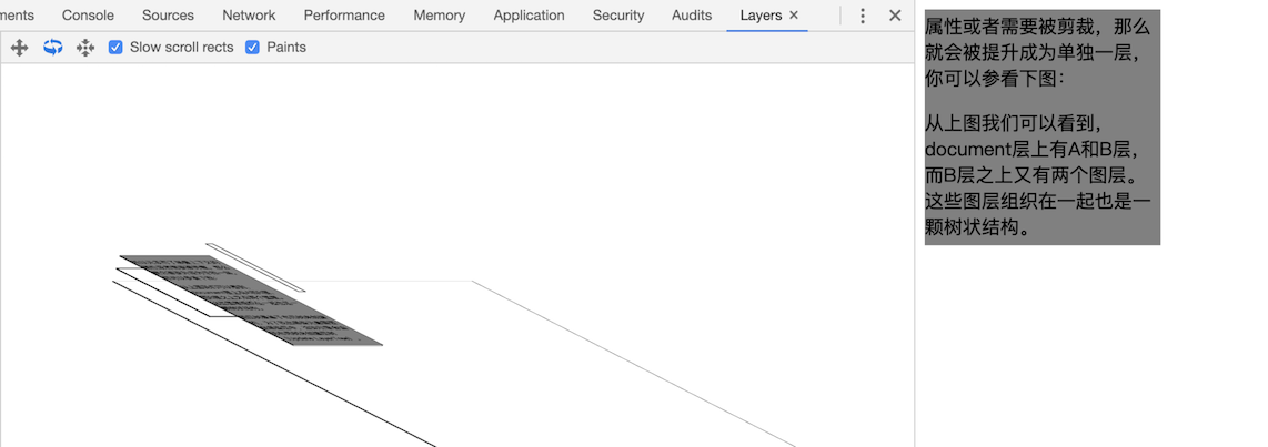 可以通过 “开发者工具” 中 “Layers” 子标签直观查看页面分层情况。