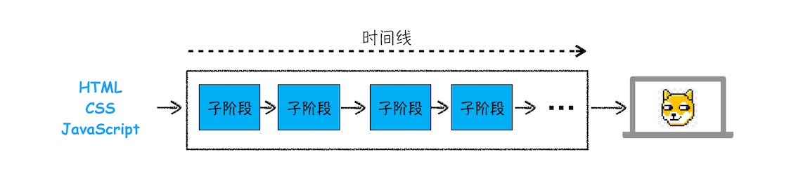 按照渲染的时间顺序,渲染流水线可分为如下几个子阶段:构建 DOM 树、样式计算、布局阶段、分层、绘制、分块、光栅化和合成。