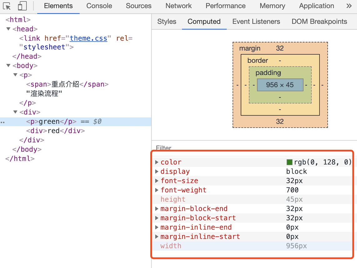 - 最终计算出的每个 DOM 节点的样式,会被保存在 ComputedStyle 的结构内,可以在 “开发者工具” 中 “Computed” 子标签中查看