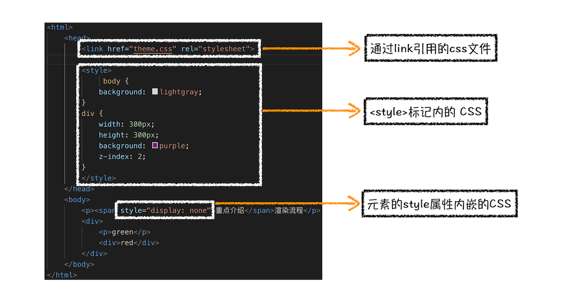 - 浏览器也是无法直接理解这些纯文本的 CSS 样式,所以当渲染引擎接收到 CSS 文本时,会执行一个转换操作,将 CSS 文本转换为浏览器可以理解的结构 —— styleSheets