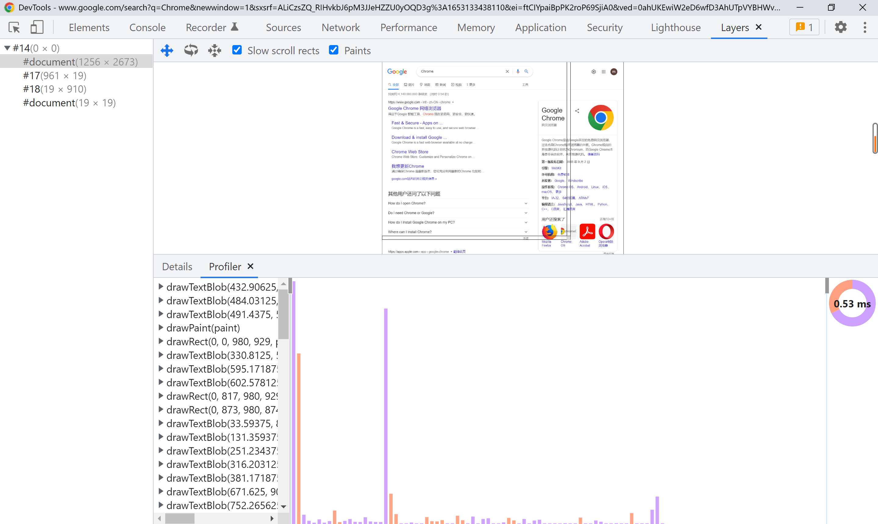 可以在 “开发者工具-Layers” 中选择 document,观察绘制列表。