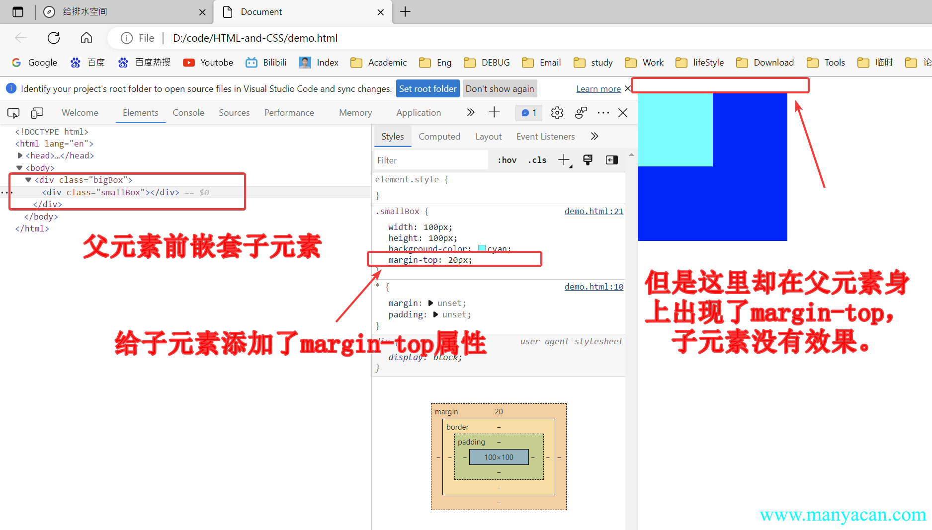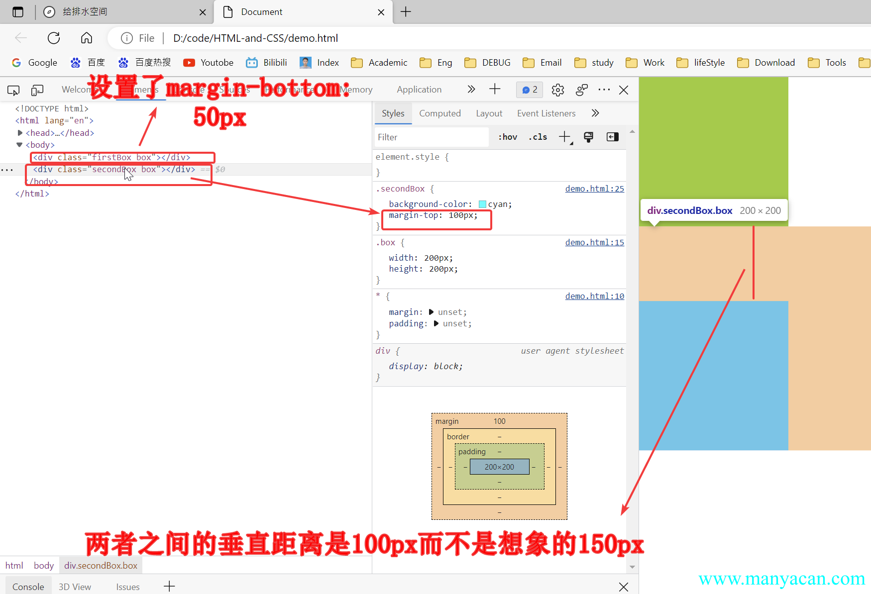 border-top: 1px solid rgba(0, 0, 0, 0);border-top: 20px solid blue;4、margin上下叠加问题是指,当两个兄弟div,上一个设置了margin-bottom,下一个设置了margin-top,那么两个元素之间的举例并不是margin-bottom+margin-top,而是取最大值最为两者之间的距离,举个栗子: