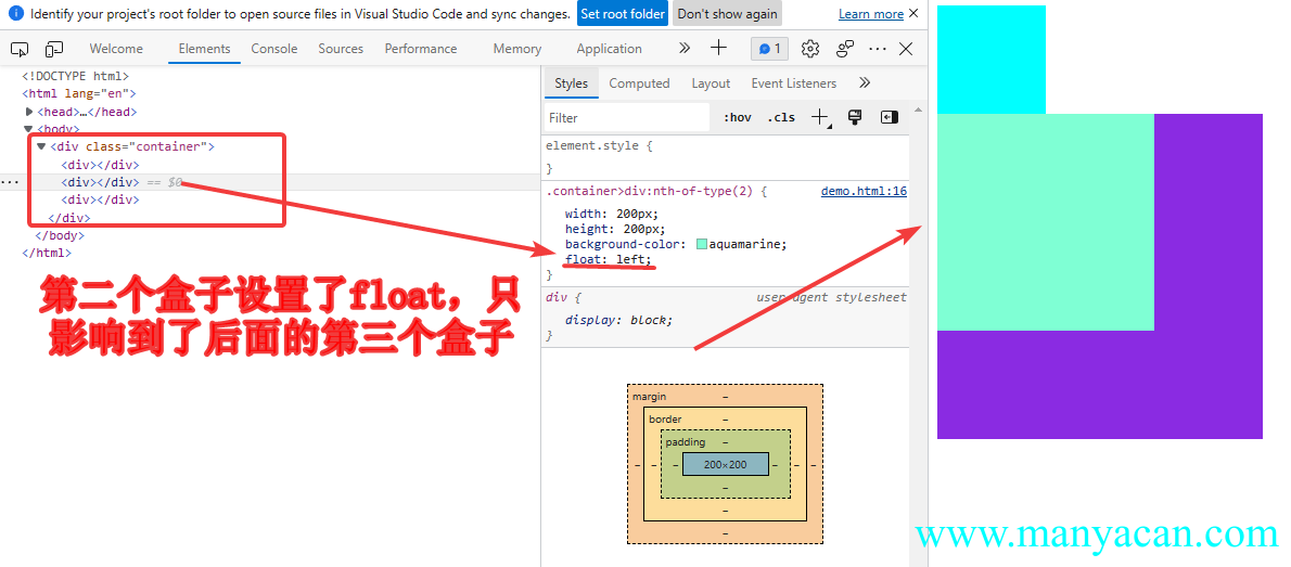 这个不用解释,其实还就是当块状盒子设置了浮动,就具备了内联盒子的特性,会自动换行。