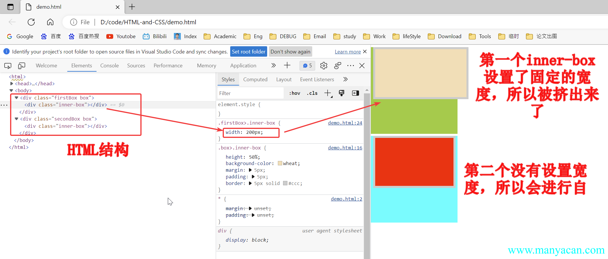 当父元素嵌套子元素,子元素设置了固定宽度(具体的px值或者%),子元素的margin、padding、border都会将元素“向外扩张”;但是如果子元素不设置width,或者width: initial,这个时候子元素会自动考虑margin、padding、border。举个栗子: