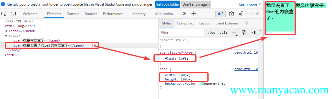 内联盒子是不支持块状盒子特性的,比如width属性,但是当设置了float属性后,就会支持了。