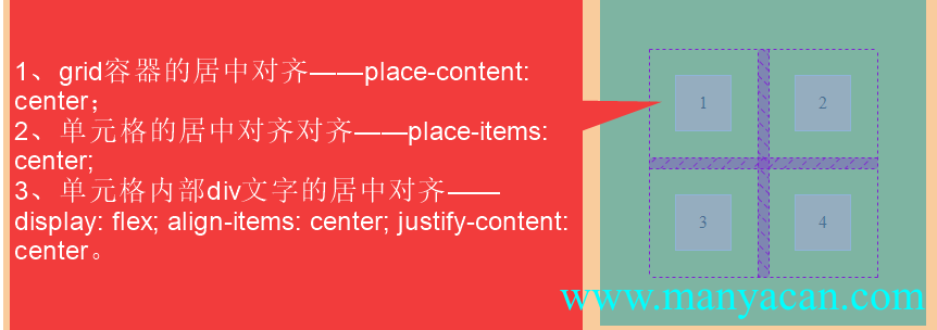 在上述栗子基础上,再增加两个子元素,并给父元素grid容器设置: