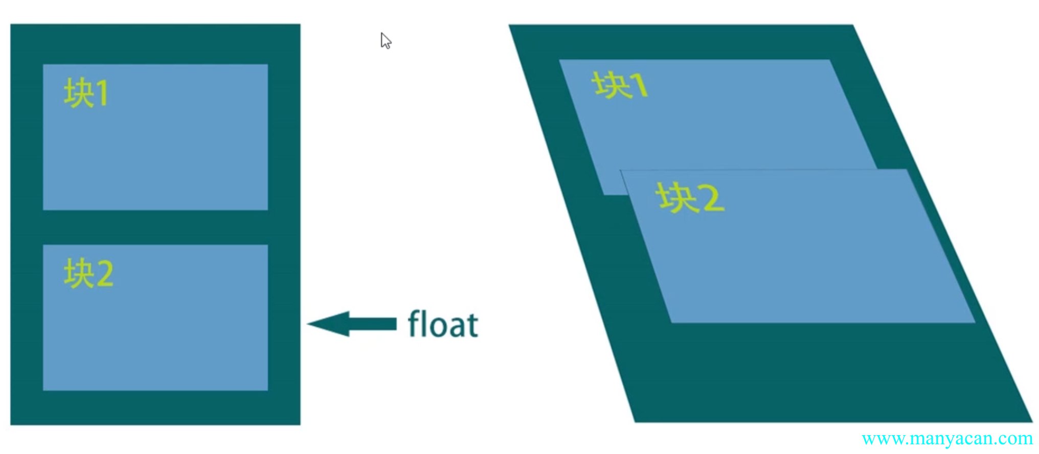 当元素被浮动时,会脱离文档流,根据float的值向左或向右移动,直到它的外边界碰到父元素的内边界或另一个浮动元素的外边界为止,是CSS布局中实现左右布局的一种方式。