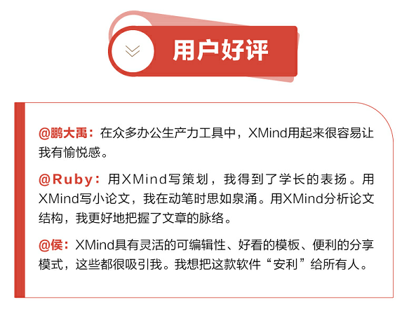 众多在自身领域闪闪发光的人都对这本书进行了推荐,还有许多XMind用户都对产品给予了十足的好评。