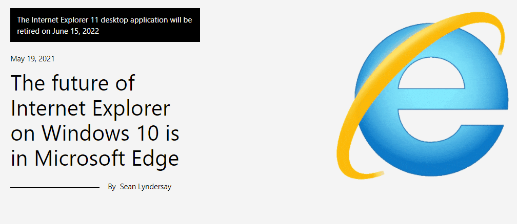 前两天,微软宣布,2022年6月15日全面停止对IE 浏览器的支持,转而使用Edge浏览器。