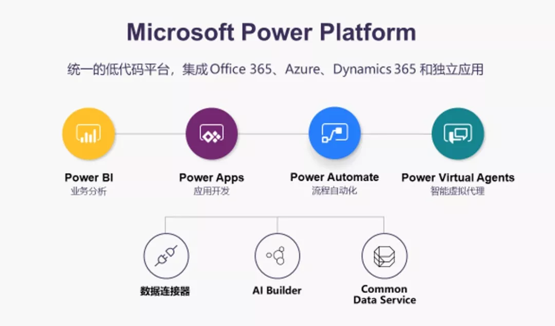 Power Platform包含Power BI,Power Apps,Power Automate和Power Virtual Agents. 这四部分覆盖了从非技术人员到专业软件开发人员的所有低代码开发需求。