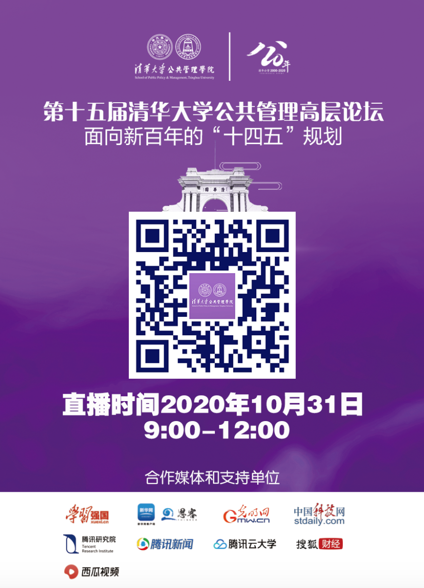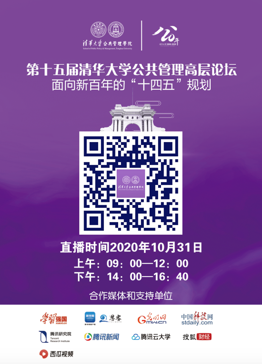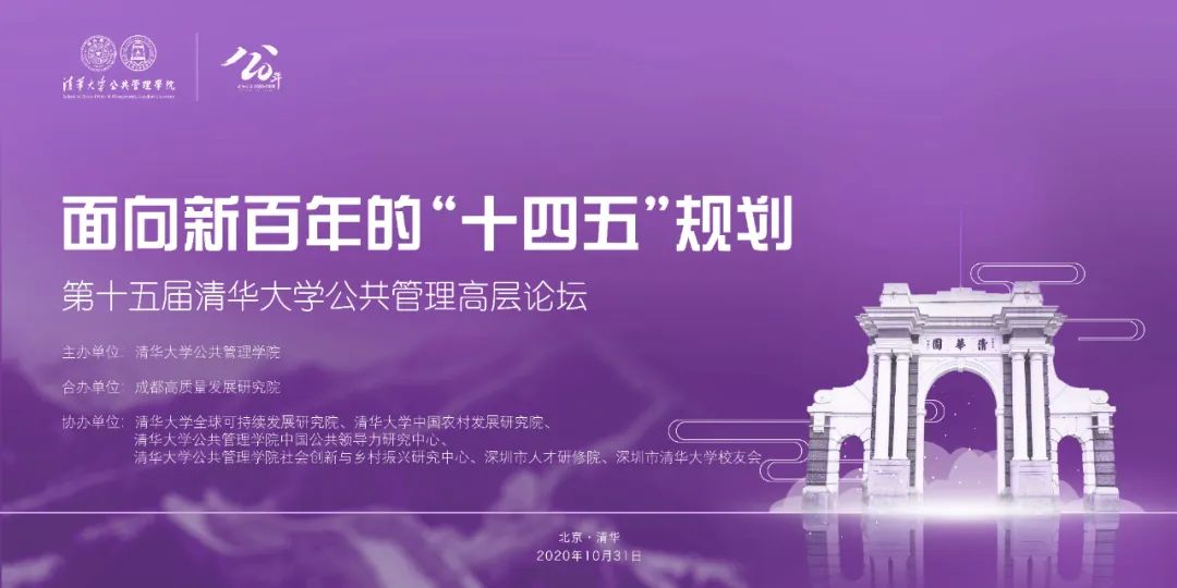 正值2020年公管学院建院20周年之际,第十五届清华大学公共管理高层论坛将于2020年10月31日(周六)在美丽的清华园举行。论坛以“面向新百年的‘十四五’规划”为主题,由清华大学公共管理学院主办,成都高质量发展研究院合办,欢迎在线观看直播——