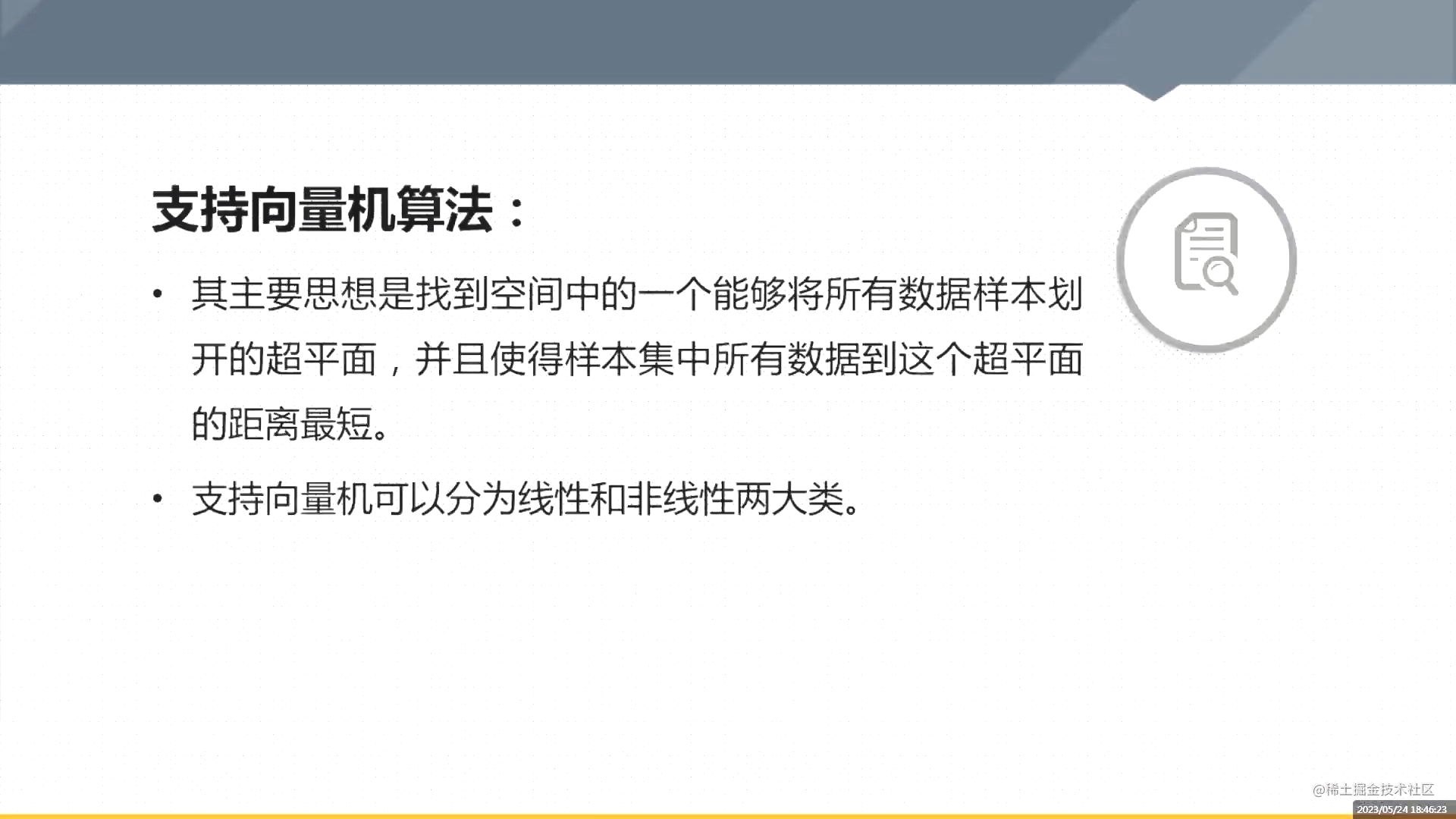 ·其主要思想是找到空间中的一个能够将所有数据样本划开的超平面,并且使得样本集中所有数据到这个超平面的距离最短。